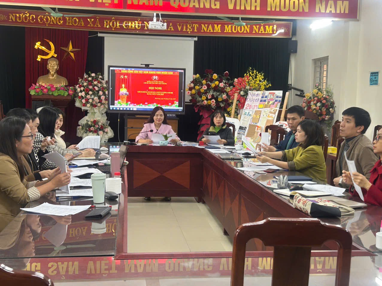Hội nghị cũng thống nhất đề xuất Đảng uỷ xã Bát Tràng xếp loại xuất sắc với 4 đồng chí có tên trên và mức xếp loại tổ chức cơ sở Đảng và tập thể lãnh đạo nhà trường theo đúng quy định, đồng thời biểu dương những cá nhân tiêu biểu đã nỗ lực phấn đấu, góp phần nâng cao chất lượng hoạt động của Chi bộ trong năm qua.