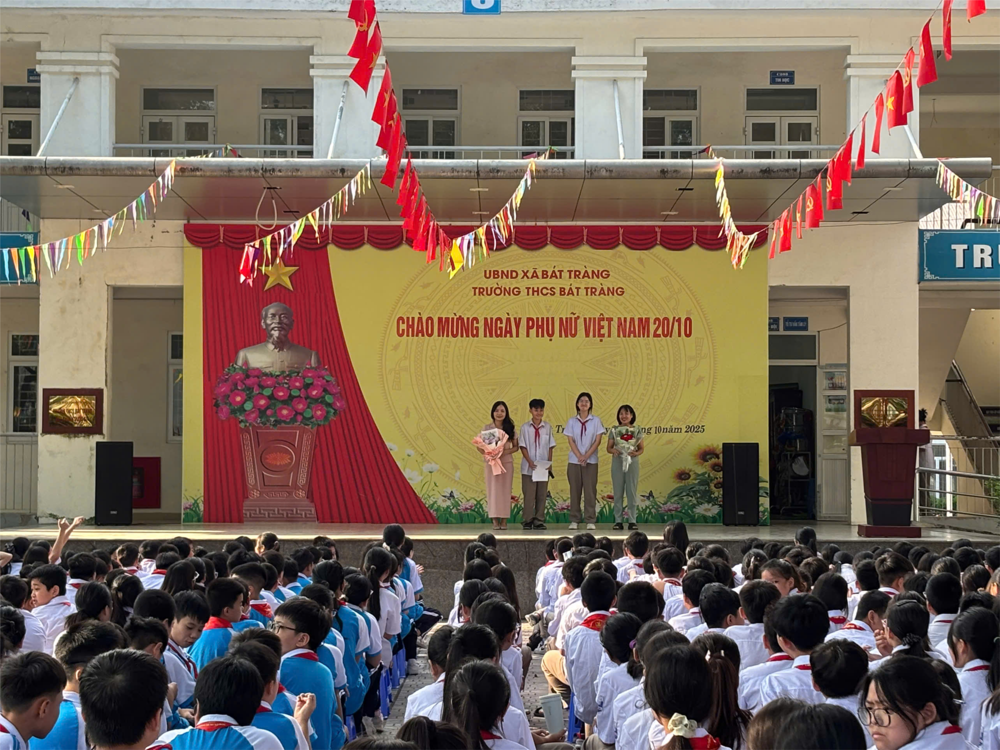 Sáng ngày 20 tháng 10 năm 2025, trong không khí rộn ràng và tươi vui của ngày Phụ nữ Việt Nam 20/10, thầy và trò trường THCS Bát Tràng đã long trọng tổ chức buổi sinh hoạt dưới cờ tuần 8 với chủ đề: “Mừng ngày Phụ nữ Việt Nam và Đại hội Liên đội năm học 2025–2026”.