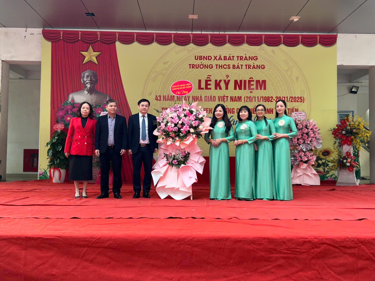 Trong không khí trang trọng ấm áp và đầy yêu thương, hôm nay, trường THCS Bát Tràng long trọng tổ chức Lễ kỉ niệm 43 năm ngày nhà giáo Việt Nam 20/11/ 1982 - 20/11/2025 nhằm ôn lại truyền thống quý báu của ngành giáo dục Việt Nam và thể hiện lòng tri ân sâu săc tới các thầy cô giáo - những người đã đang và sẽ tiếp tục cống hiến thầm lặng cho sự nghiệp cao quý - sự nghiệp trồng người của đất nước nói chung và xã Bát Tràng nói riêng. Buổi lễ diễn ra trong không gian trang trọng, ấm áp tại sân trường, với sự hiện diện của đại diện xã Bát Tràng, lãnh đạo địa phương, Ban đại diện cha mẹ học sinh, cùng toàn thể cán bộ, giáo viên, nhân viên và học sinh nhà trường.