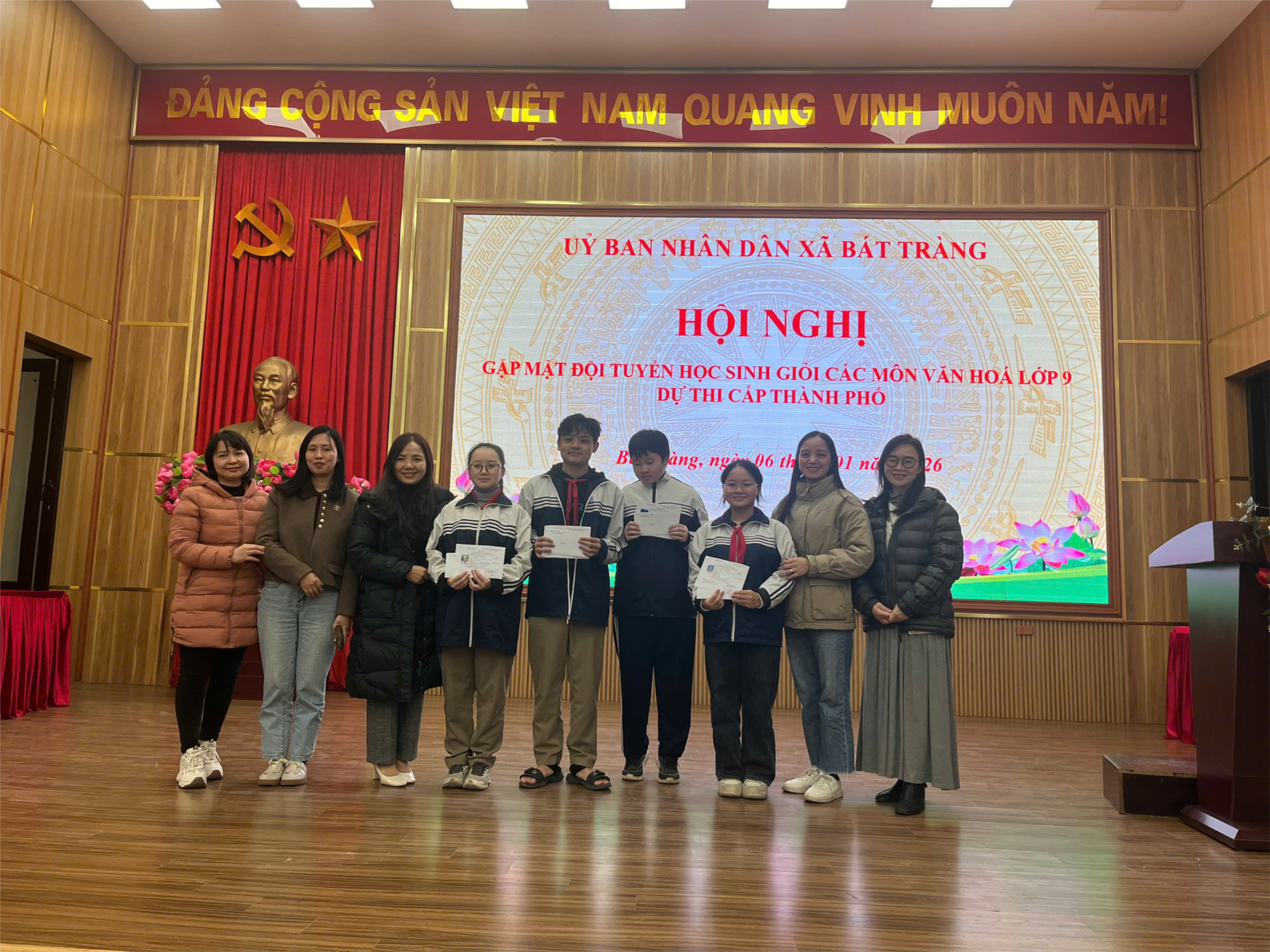 Trong Kỳ thi chọn học sinh giỏi Thành phố các môn văn hóa lớp 9 năm học 2025–2026 do Sở Giáo dục và Đào tạo Hà Nội tổ chức, Trường THCS Bát Tràng vinh dự có 03 học sinh đạt giải, góp phần khẳng định chất lượng giáo dục cũng như hiệu quả công tác bồi dưỡng học sinh mũi nhọn của nhà trường.