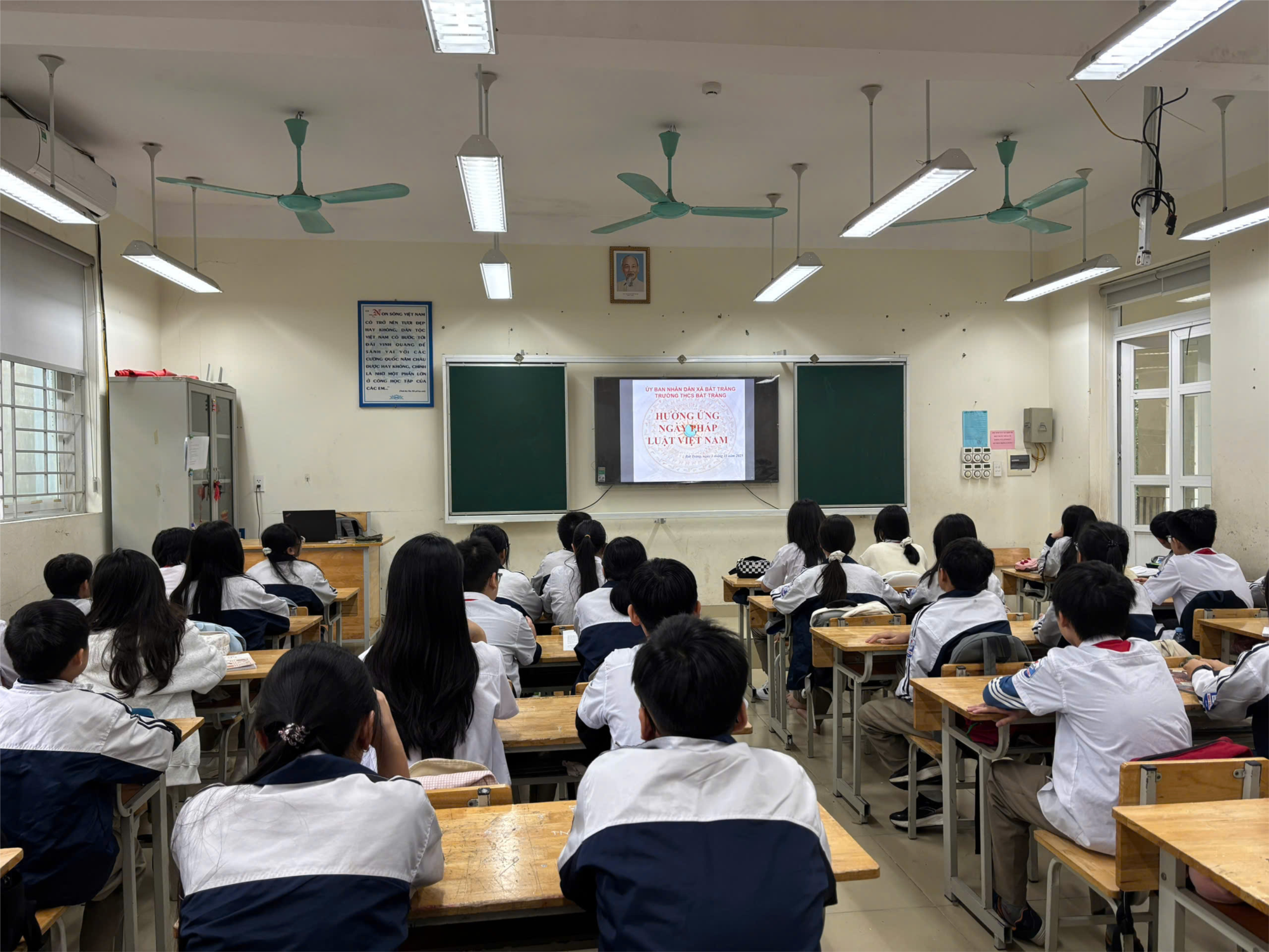 Bát Tràng, ngày 3 tháng 11 năm 2025 – Trong tiết sinh hoạt đầu tuần thứ 10, thầy và trò trường THCS Bát Tràng đã tổ chức hoạt động hưởng ứng “Ngày Pháp luật nước Cộng hòa xã hội chủ nghĩa Việt Nam” năm 2025 với không khí nghiêm túc, sôi nổi và đầy ý nghĩa.