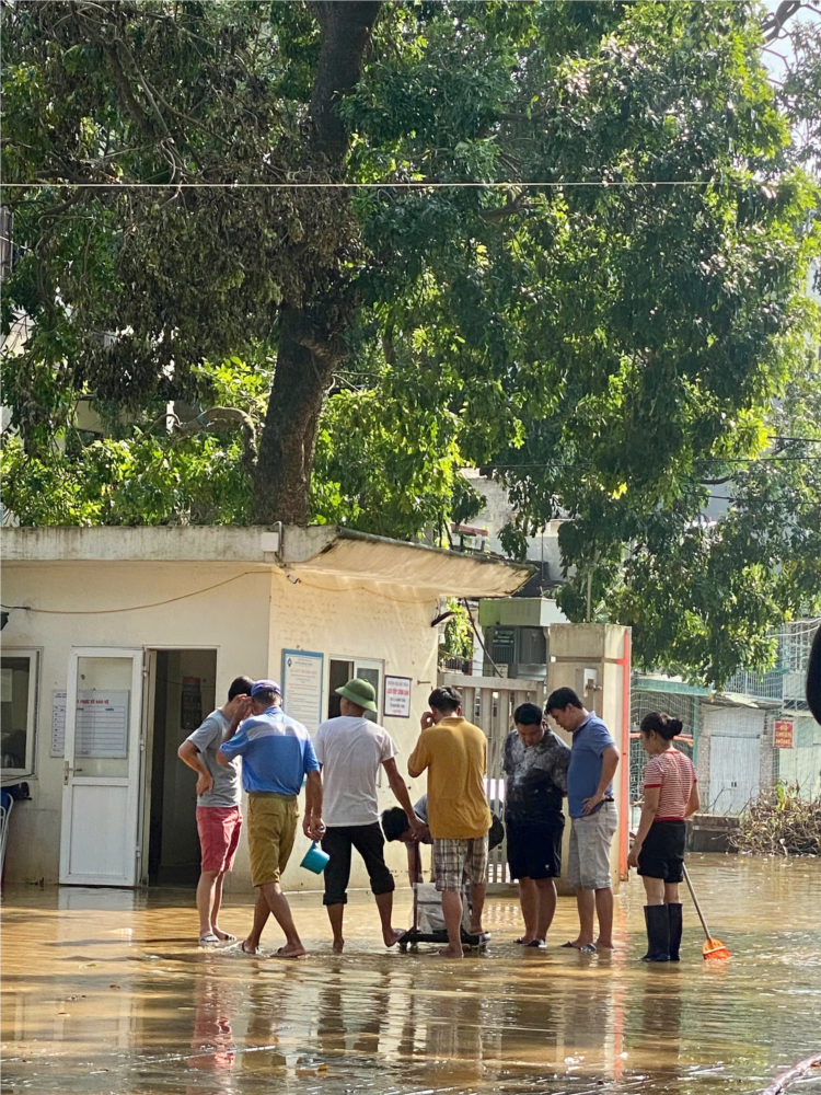 1. Nhà trường thường xuyên có 2 bảo vệ trực và PHHS cùng cơ quan chức năng tập trung dọn dẹp vệ sinh và khắc phục hậu quả sau những ngày nước lên trong hai ngày 14 và 15 tháng 9 năm 2024.