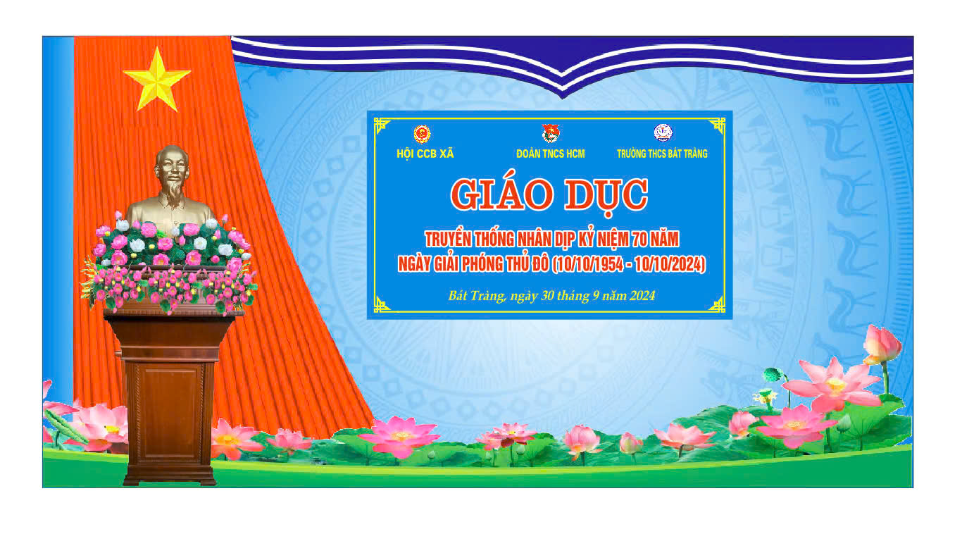 Sáng nay - ngày 30 tháng 9 năm 2024, trường THCS Bát Tràng tổ chức giáo dục truyền thống nhân dịp kỉ niệm 70 năm ngày chiến thắng Thủ đô 10/10/1954 - 10/10/2024 trong tiết sinh hoạt dưới cờ đầu tuần 5. Thực hiện nhiệm vụ năm học và chương trình giáo dục đạo đức truyền thống cho học sinh. Được sự phối hợp của Hội CCB xã Bát Tràng, Đoàn TNCS Hồ Chí Minh phối hợp với trường THCS Bát Tràng đã thực hiện chuyên đề giáo dục học sinh. Đến dự buổi tuyên truyền có sự hiện diện của Đại tá - Báo cáo viên Nguyễn Quang Minh - Báo cáo viên - Học viện chính trị Bộ Quốc phòng . Ông Nguyễn Thọ Hải- Chủ tịch hội CCB xã Bát Tràng. và các thầy cô giáo và hơn 700 học sinh trường THCS Bát Tràng.