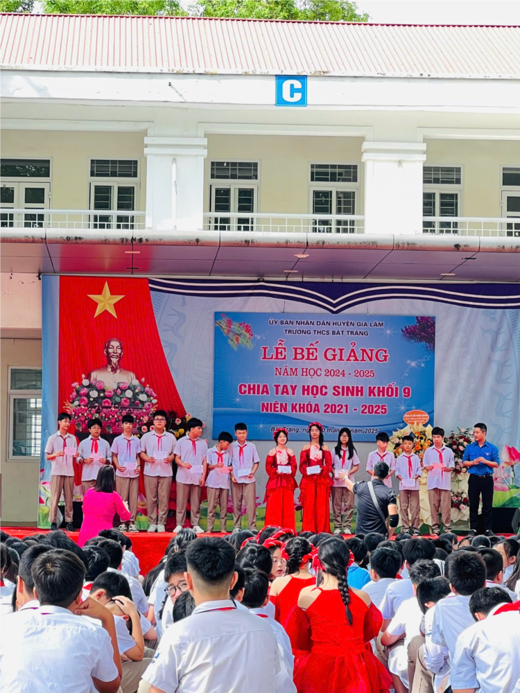Lễ bế giảng năm học 2024 - 2025 khép lại trong niềm vui và tự hào của toàn thể cán bộ, giáo viên, học sinh Trường THCS Bát Tràng. Một năm học trôi qua với biết bao nỗ lực, cống hiến và trưởng thành. Chúc các em học sinh có một kỳ nghỉ hè bổ ích, an toàn, và đặc biệt, chúc các em học sinh lớp 9 vững vàng, tự tin bước vào kỳ thi chuyển cấp với kết quả tốt đẹp. Chúc các thầy cô luôn tràn đầy năng lượng để tiếp tục sứ mệnh “trồng người”, đồng hành cùng thế hệ trẻ trên con đường học vấn và trưởng thành.