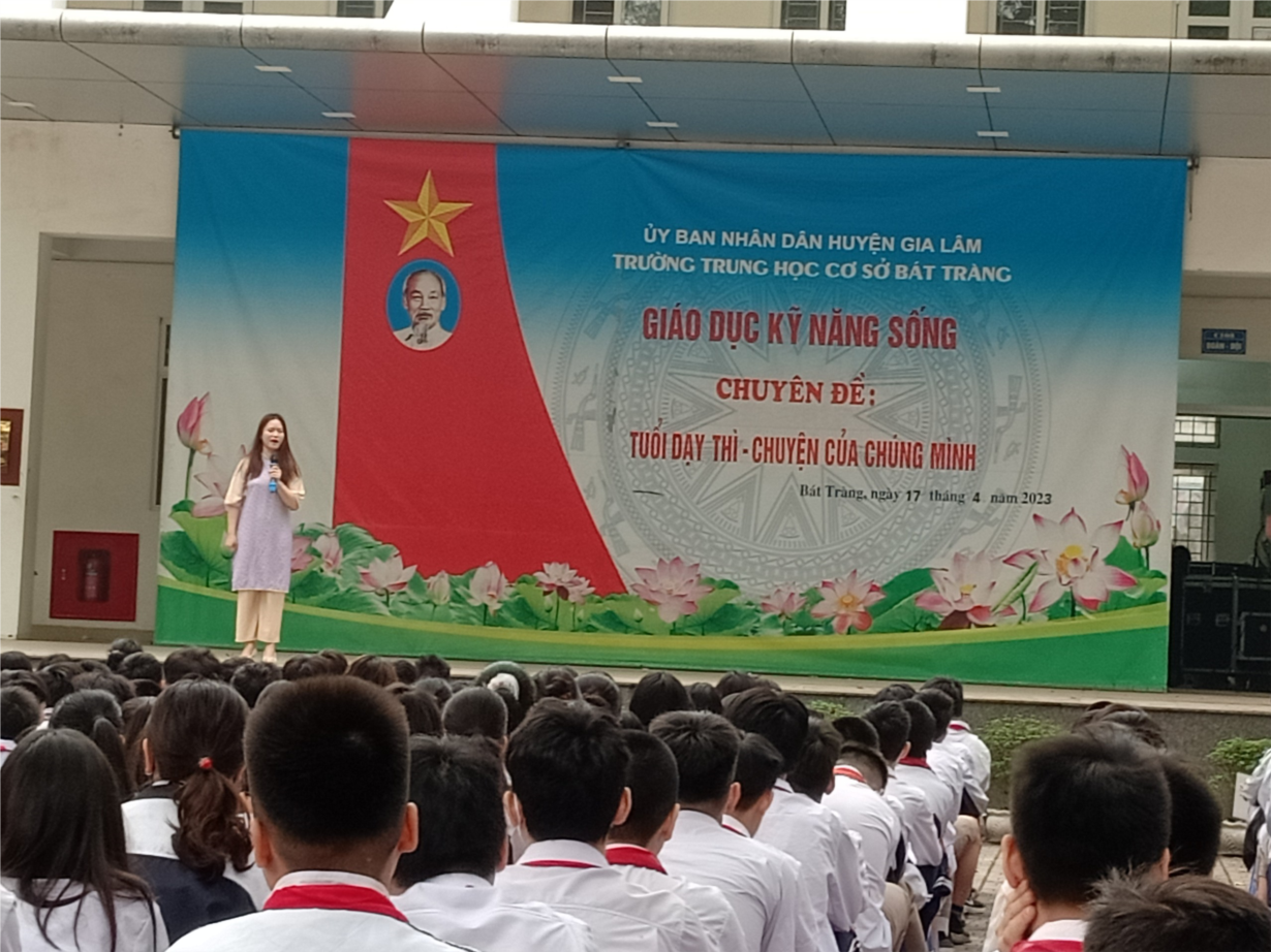 Sáng ngày 17/ 4 /2023, trong tiết sinh hoạt dưới cờ tuần 31, học sinh trường THCS Bát Tràng được lắng nghe Thạc sĩ, chuyên gia tâm lí giáo dục học Trần Thị Phương nói chuyện chia sẻ với chuyên đề " Tuổi dậy thì- Chuyện của chúng mình".