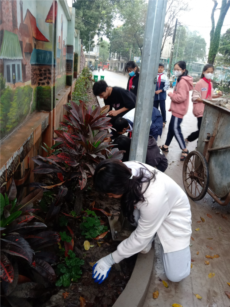 Trong một thời gian ngắn và số lượng học sinh đã được phân công các em học sinh đã có ý thức và tập trung nên con đường dọc theo tranh tường đã được dọn dẹp sạch sẽ.