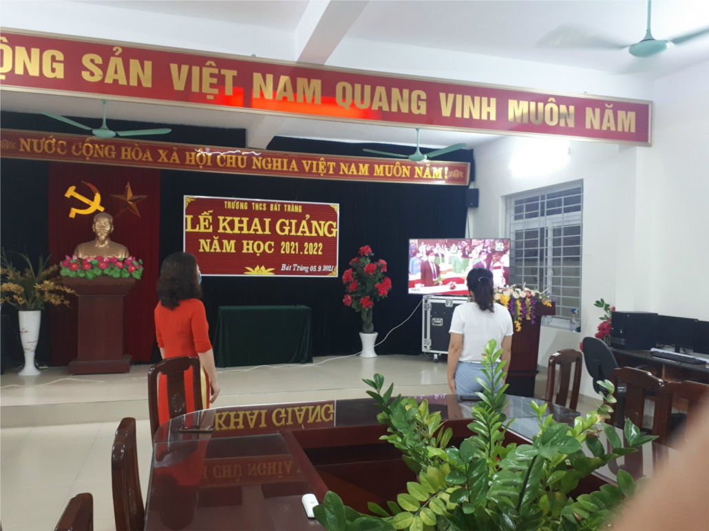 Trong không khí của những ngày thu lịch sử, cả nước hân hoan chào mừng kỷ niệm 76 năm Cách mạng Tháng Tám và Quốc khánh 2/9, hòa chung với khí thế tưng bừng, náo nhiệt của tuổi trẻ học đường, cả nước chào đón năm học mới - ngày “Toàn dân đưa trẻ đến trường”, thầy và trò trường THCS Bát Tràng đã chuẩn bị từ 7h20’ để dự lễ khai giảng năm học qua truyền hình Hà Nội H1, H2. với bao niềm vui, náo nức, cảm xúc chuẩn bị cho một năm học mới với những thành công mới.