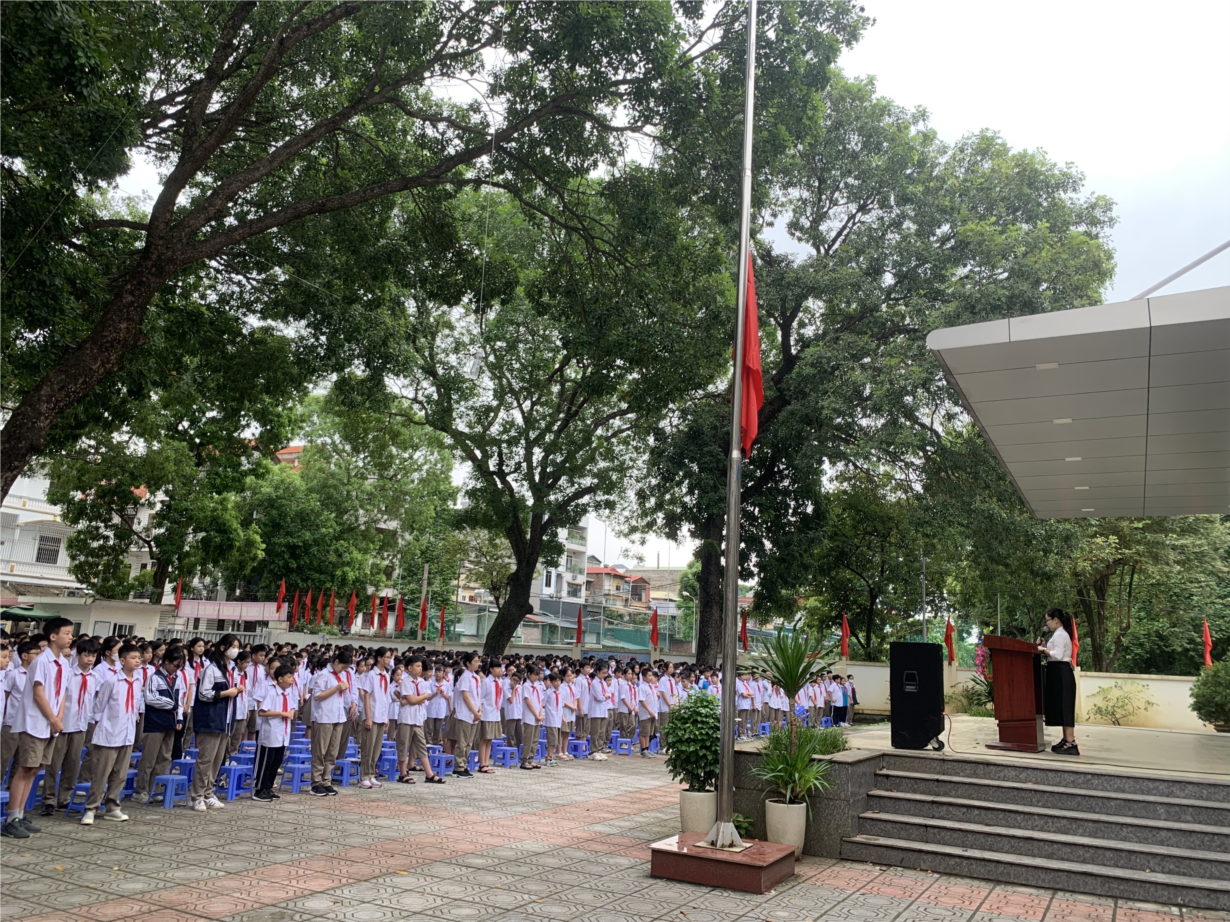 Ngày 12/9/2023, tại số nhà 37, ngách 29/70 phố Khương Hạ, phường Thanh Xuân, Hà Nội xảy ra vụ cháy đặc biệt nghiêm trọng làm 56 người chết và 37 người bị thương, trong đó có một số bạn học sinh trường THCS Khương Đình. Để chia sẻ nỗi đau buồn, mất mát của các gia đình và Thành phố;ngày hôm nay 18/9/2023 (thứ hai) đồng loạt các cơ quan đơn vị trường học và các địa phương trên toàn thành phố Hà Nội tổ chức dành 01 phút mặc niệm các nạn nhân đã tử vong trong vụ cháy. Trong giờ chào cờ hôm nay, tập thể CBQL, GV và CNV nhà trường và hơn 700 hs trường THCS BT dành 1 phút mặc niệm. Và cô giáo TPT đọc bài thơ: